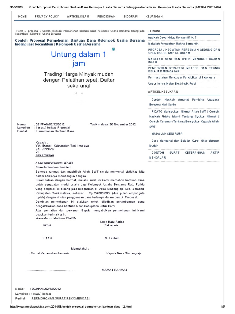 Contoh Proposal Pengajuan Dana Usaha Perorangan - Gambaran from data03.123dok.com Please fill this form, we will try to respond as soon as possible. Contoh proposal usaha banyak dicari untuk menjadi rujukan para calon pengusaha muda. Contoh proposal usaha di atas dapat anda edit sesuai dengan jenis usaha kelompok maupun estimasi dana yang dibutuhkan dan dalam membuat proposal bantuan dana usaha juga harus dilampirkan dengan lembar pengesahan dan susunan pengurus kelompok usaha atau anggota. Proposal singkat pengajuan dana bantuan kelompok hadrah rt 001/02. Contoh proposal pengajuan modal usaha. Latar belakang perkembangan zaman yang terus terjadi. Contoh proposal permohonan modal usaha kios kelontong back to. Dalam bahasan ini anda haruslah membuat satu contoh proposal permohonan bantuan dana guna memberi permodalan kepada usaha yang akan anda jalankan atau yang sudah anda kerjakan.